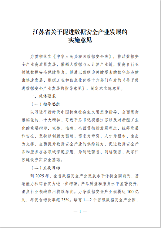 江苏:关于印发《江苏省关于促进数据安全产业发展的实施意见》的通知