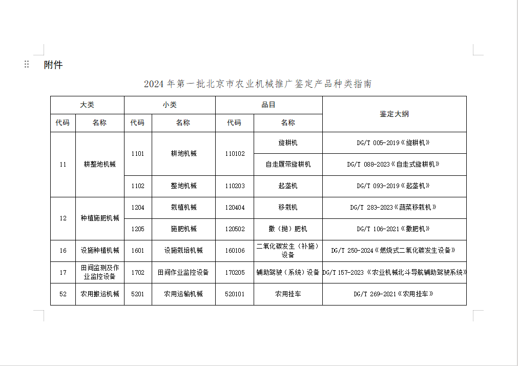北京:关于发布《2024年第一批北京市农业机械推广鉴定产品种类指南》的通知