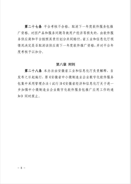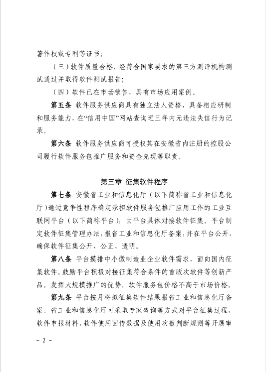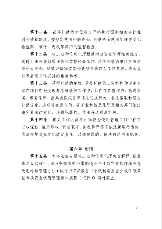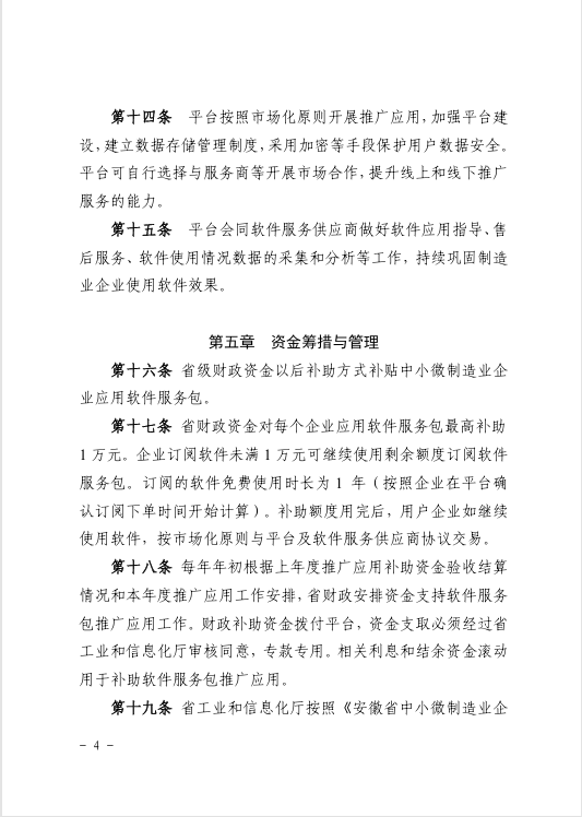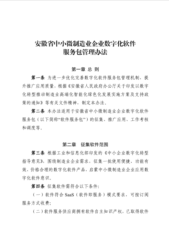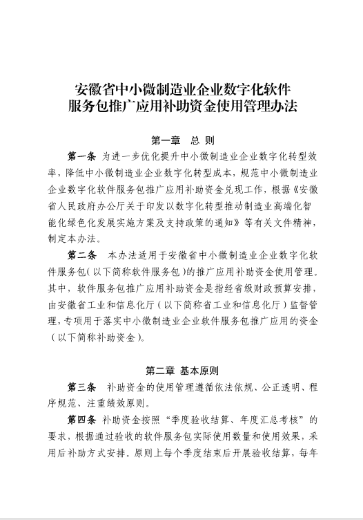 安徽:关于印发 《中小微制造业企业数字化软件服务包管理办法、中小微制造业企业数字化软件服务包推广应用补助资金使用管理办法》的通知