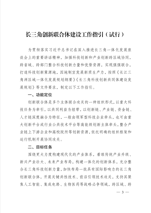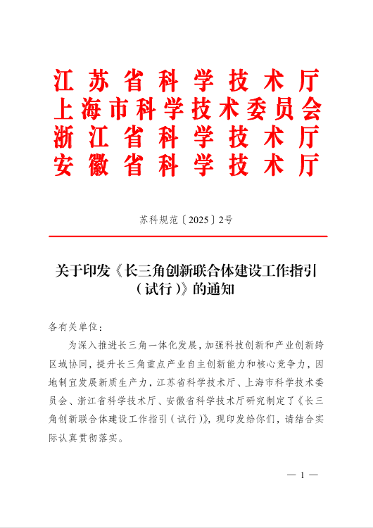江苏:关于印发《长三角创新联合体建设工作指引(试行)》的通知