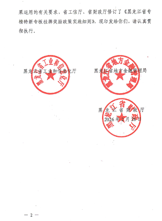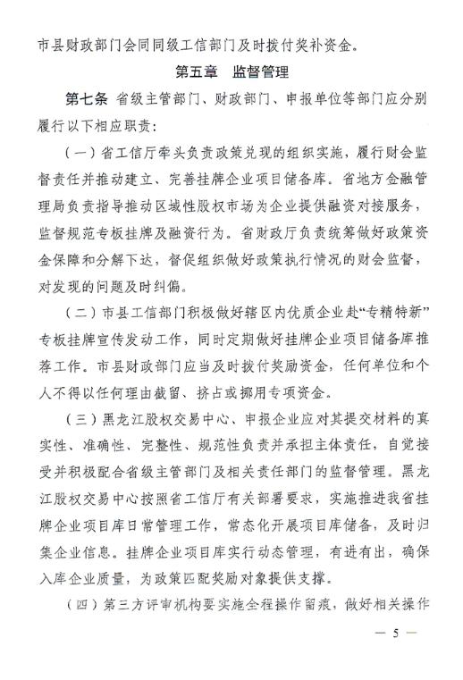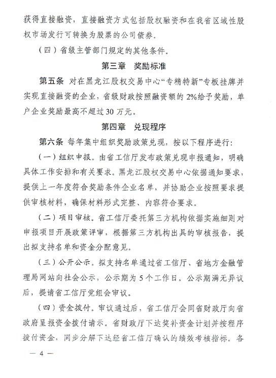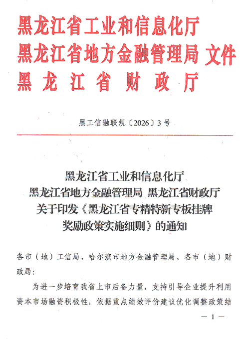黑龙江:关于印发《黑龙江省专精特新专板挂牌奖励政策实施细则》的通知