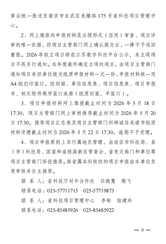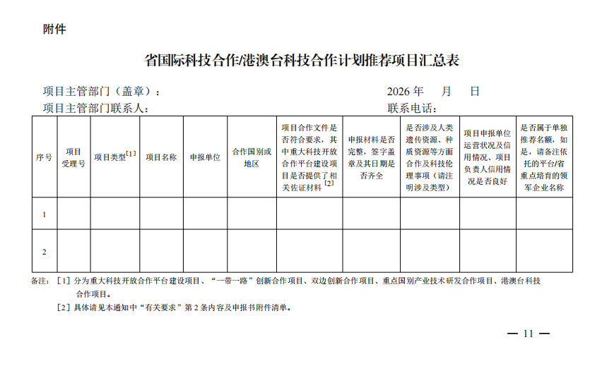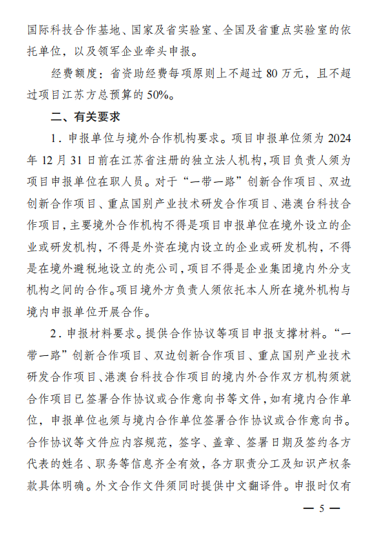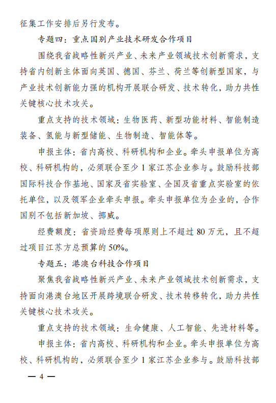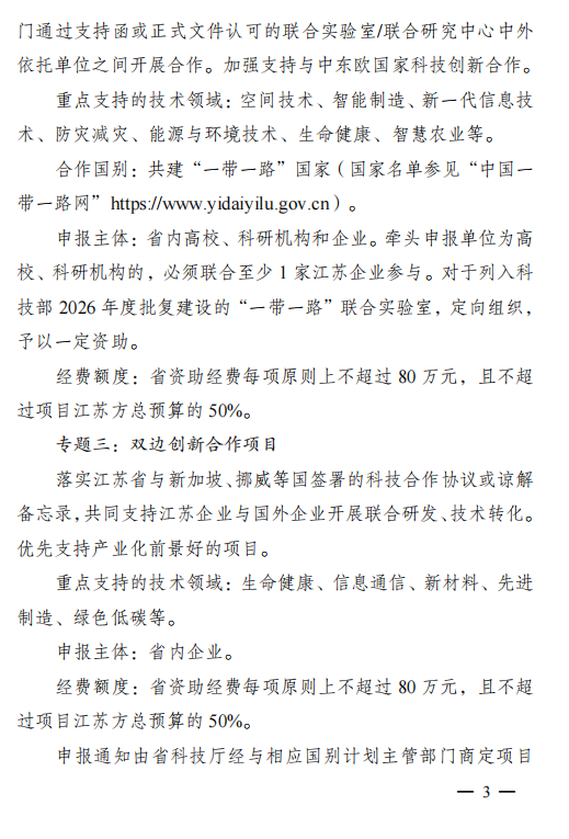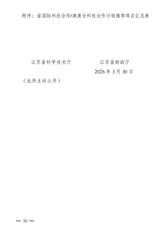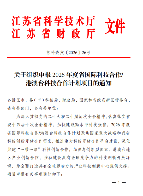 江苏:关于组织申报 2026 年度省国际科技合作/ 港澳台科技合作计划项目的通知