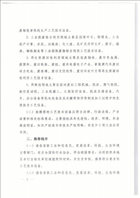 4.工信部、国家发改委、科技部、生态环境部关于开展《国家工业资源综合利用先进适用工艺技术设备目录》推荐工作的通知