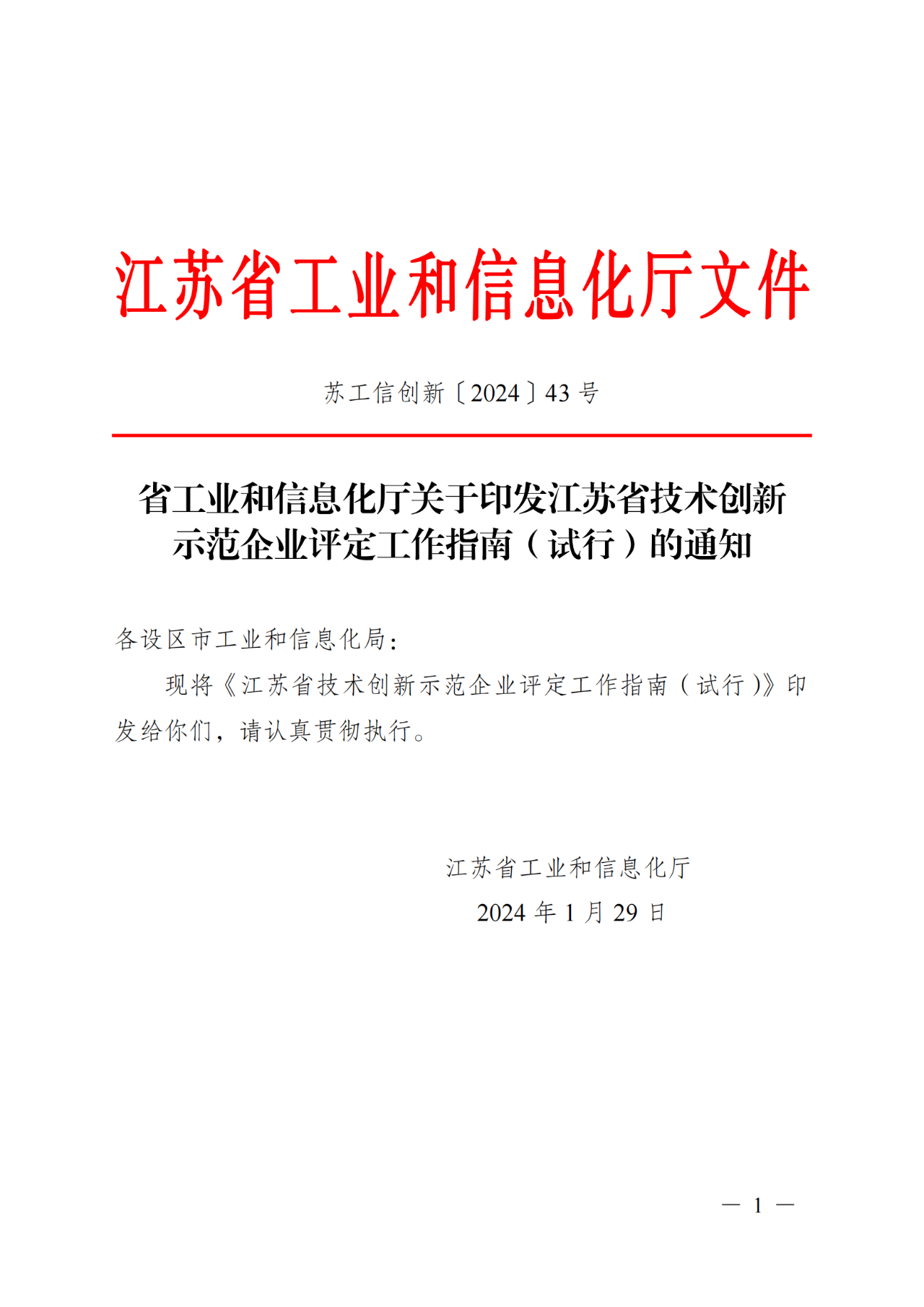 附:省工业和信息化厅关于印发江苏省技术创新示范企业评定工作指南(试行)的通知