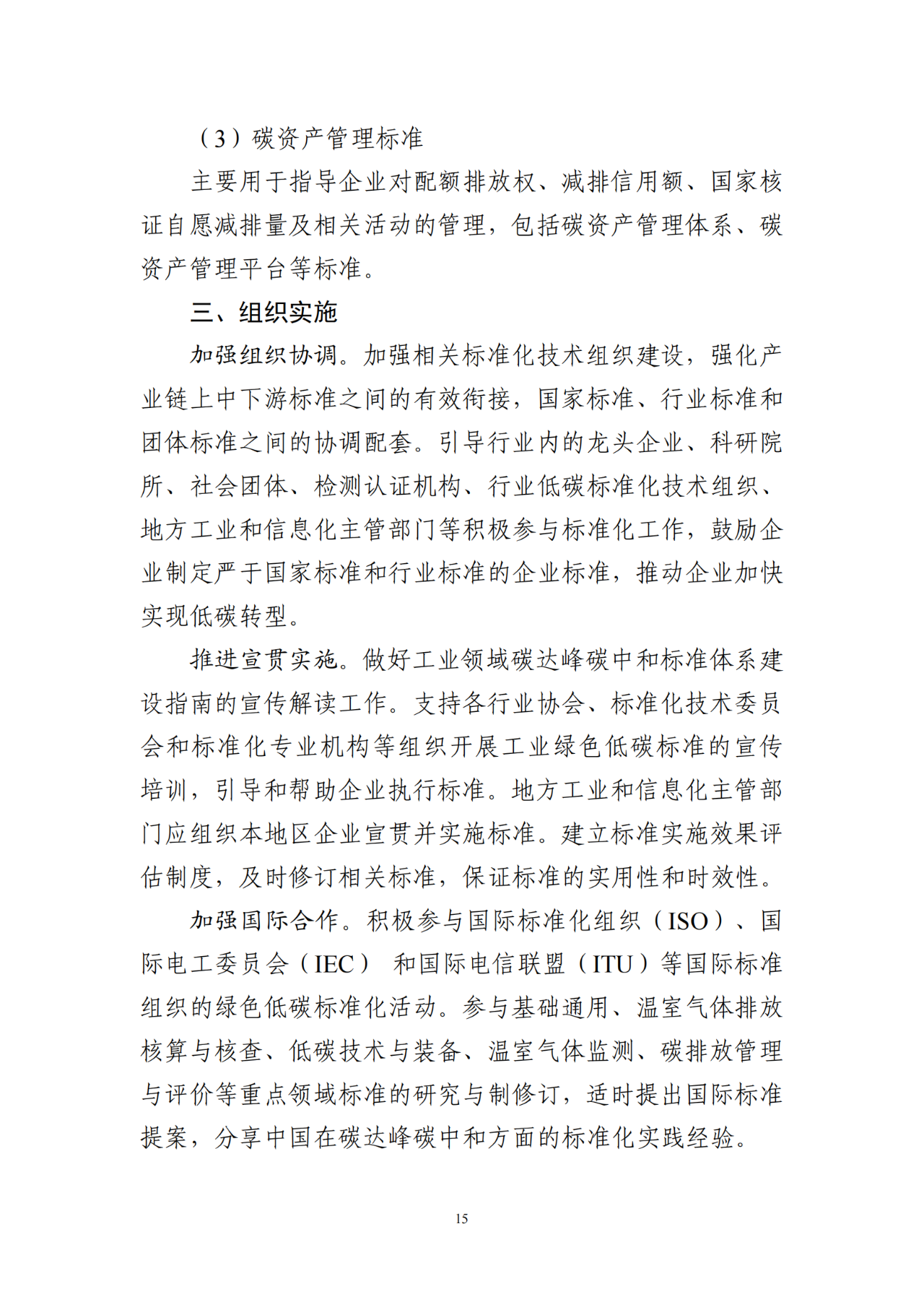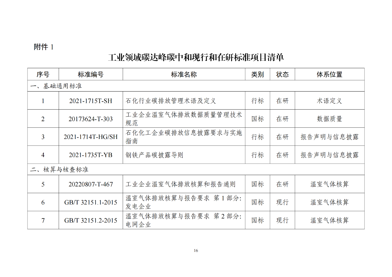 工信部:关于印发工业领域碳达峰碳中和标准体系建设指南的通知