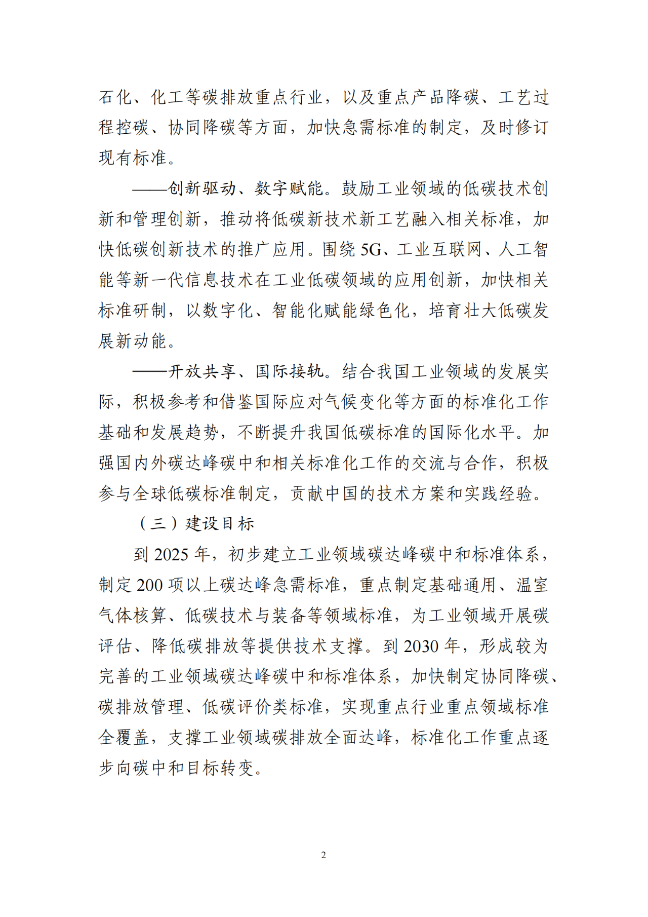 为切实发挥标准对工业领域碳达峰碳中和的支撑和引领作用,工业和信息化部依据《新产业标准化领航工程实施方案(2023-2035年)》《工业领域碳达峰实施方案》《建立健全碳达峰碳中和标准计量体系实施方案》等,组织编制了《工业领域碳达峰碳中和标准体系建设指南》。现印发给你们,请结合本地区、本行业、本领域实际,在标准化工作中贯彻执行。