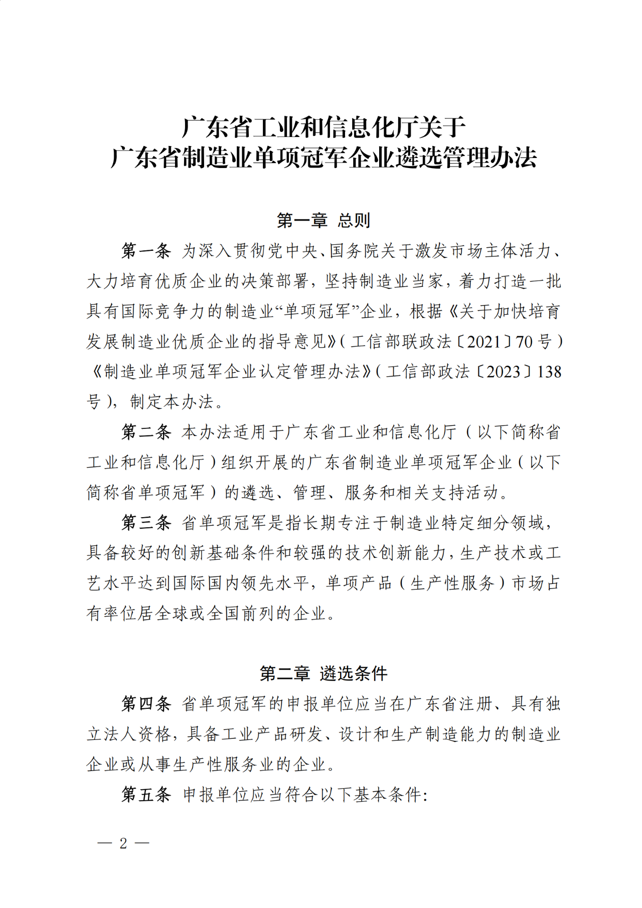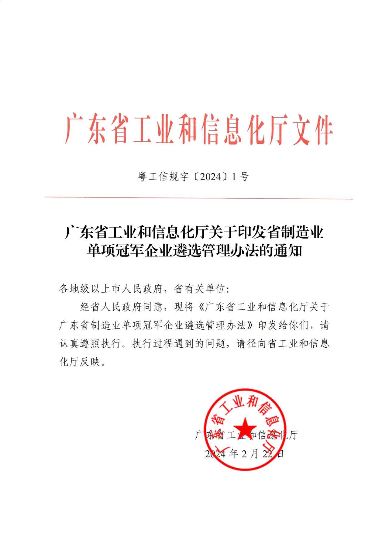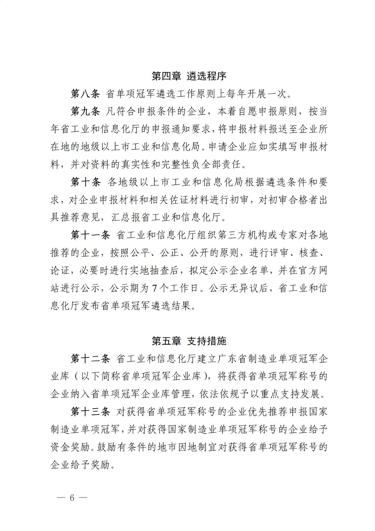 广东:关于印发省制造业单项冠军企业遴选管理办法的通知