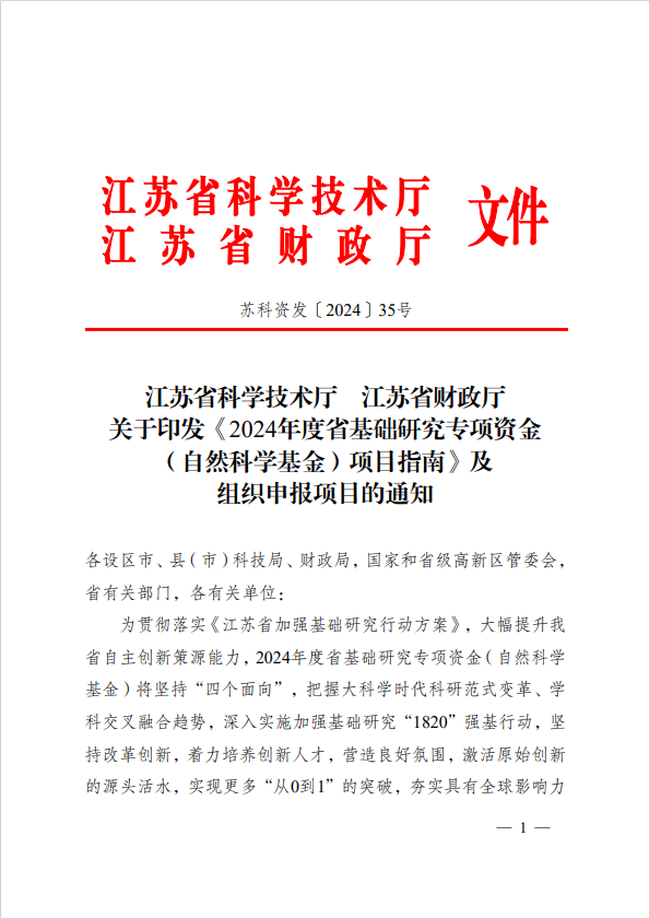 江苏:关于印发《2024年度省基础研究专项资金(自然科学基金)项目指南》及组织申报项目的通知