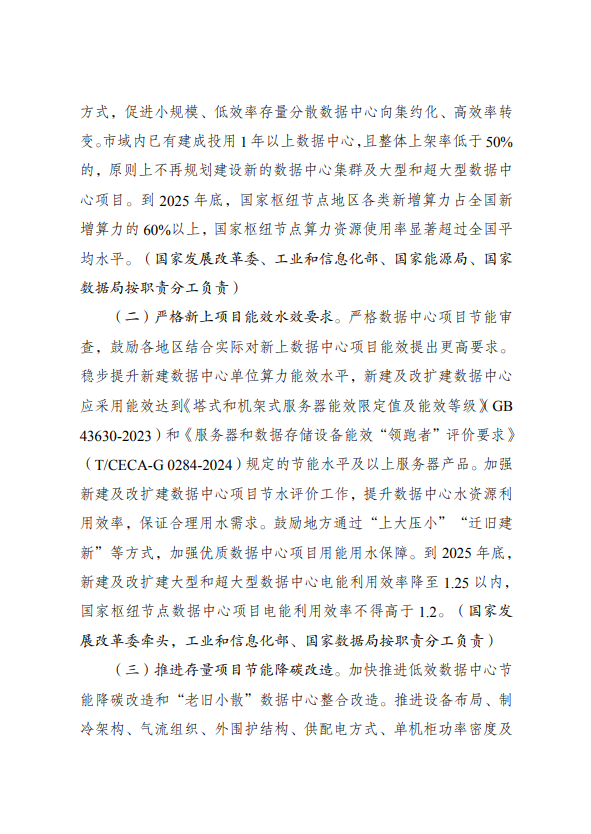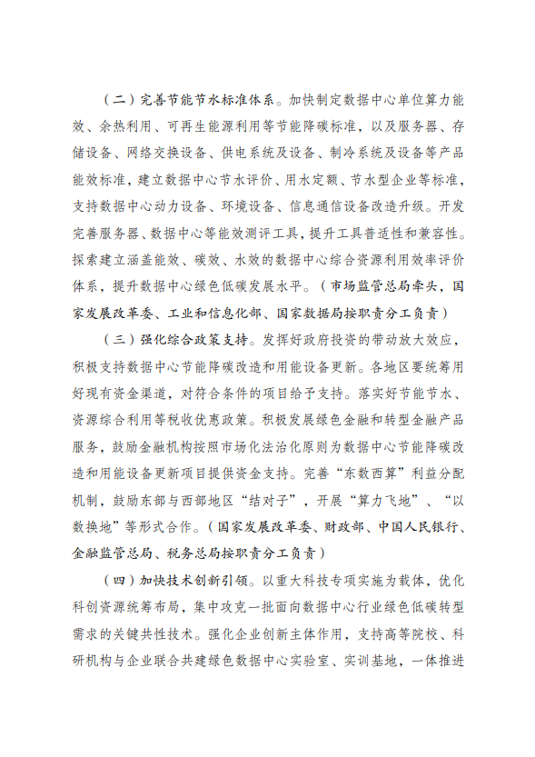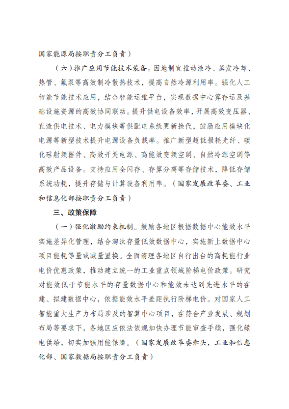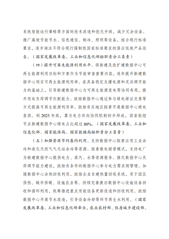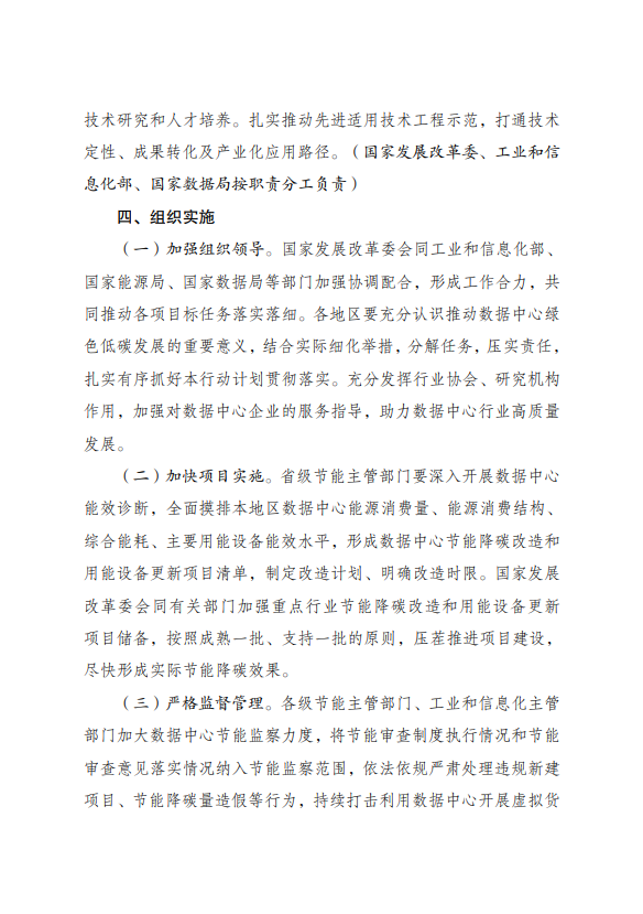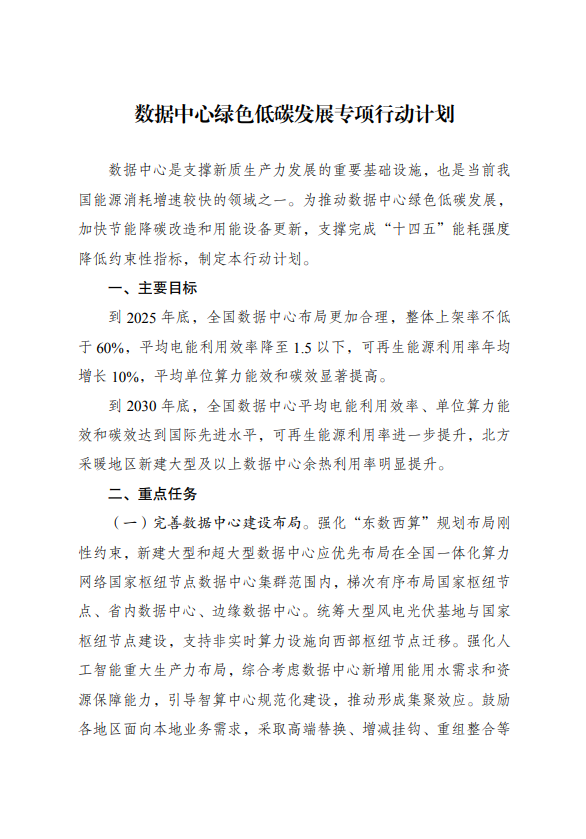 为全面贯彻党的二十大精神,认真落实党中央、国务院决策部署,实施全面节约战略,加大节能降碳工作力度,推动数据中心绿色低碳发展,加快节能降碳改造和用能设备更新,支撑完成“十四五”能耗强度降低约束性指标,国家发展改革委、工业和信息化部、国家能源局、国家数据局等部门制定了《数据中心绿色低碳发展专项行动计划》。现印发给你们,请认真抓好落实。