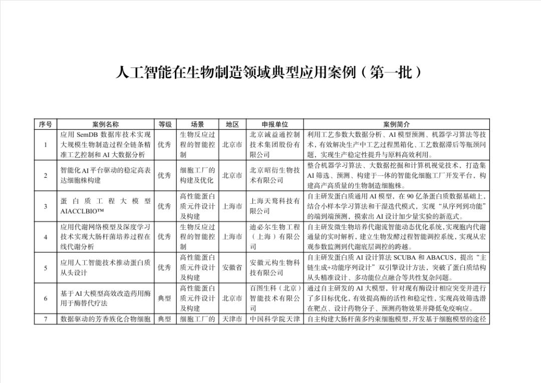 工信部:关于印发人工智能在生物制造领域典型应用案例(第一批)的通知
