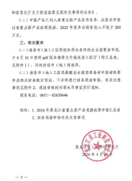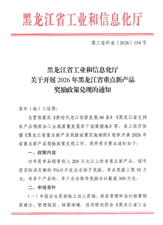 黑龙江:关于开展2026年黑龙江省重点新产品奖励政策兑现的通知