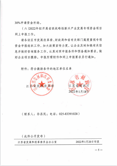 江苏:关于组织申报2022年省级战略性新兴产业发展专项资金项目的预通知