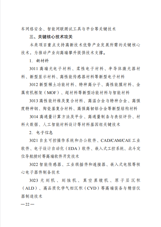 江苏:关于印发2022年度省科技计划专项资重点研发计划产业前瞻与关键核心技术项目指南通知