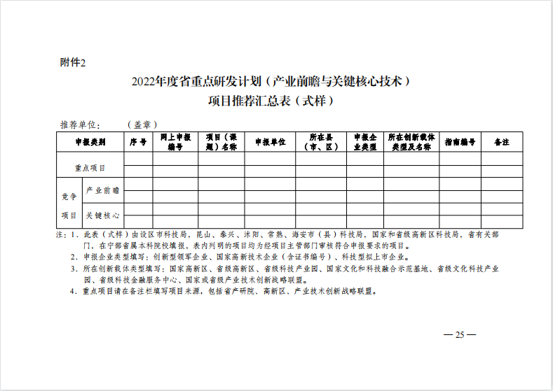 2.2022年度省重点研发计划(产业前瞻与关键核心 技术)项目推荐汇总表(式样)