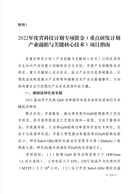 附件:1.2022年度省科技计划专项资金(重点研发计划产 业前瞻与关键核心技术)项目指南