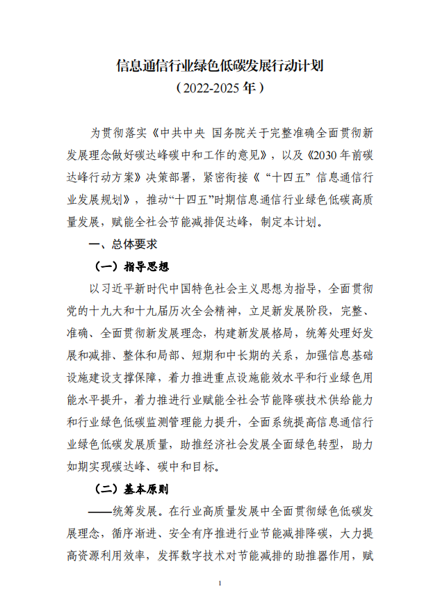 七部门:关于印发信息通信行业绿色低碳发展行动计划(2022-2025年)的通知