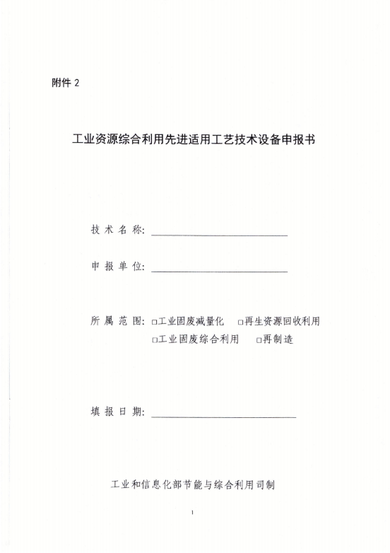 2.工业资源综合利用先进适用工艺技术设备申报书